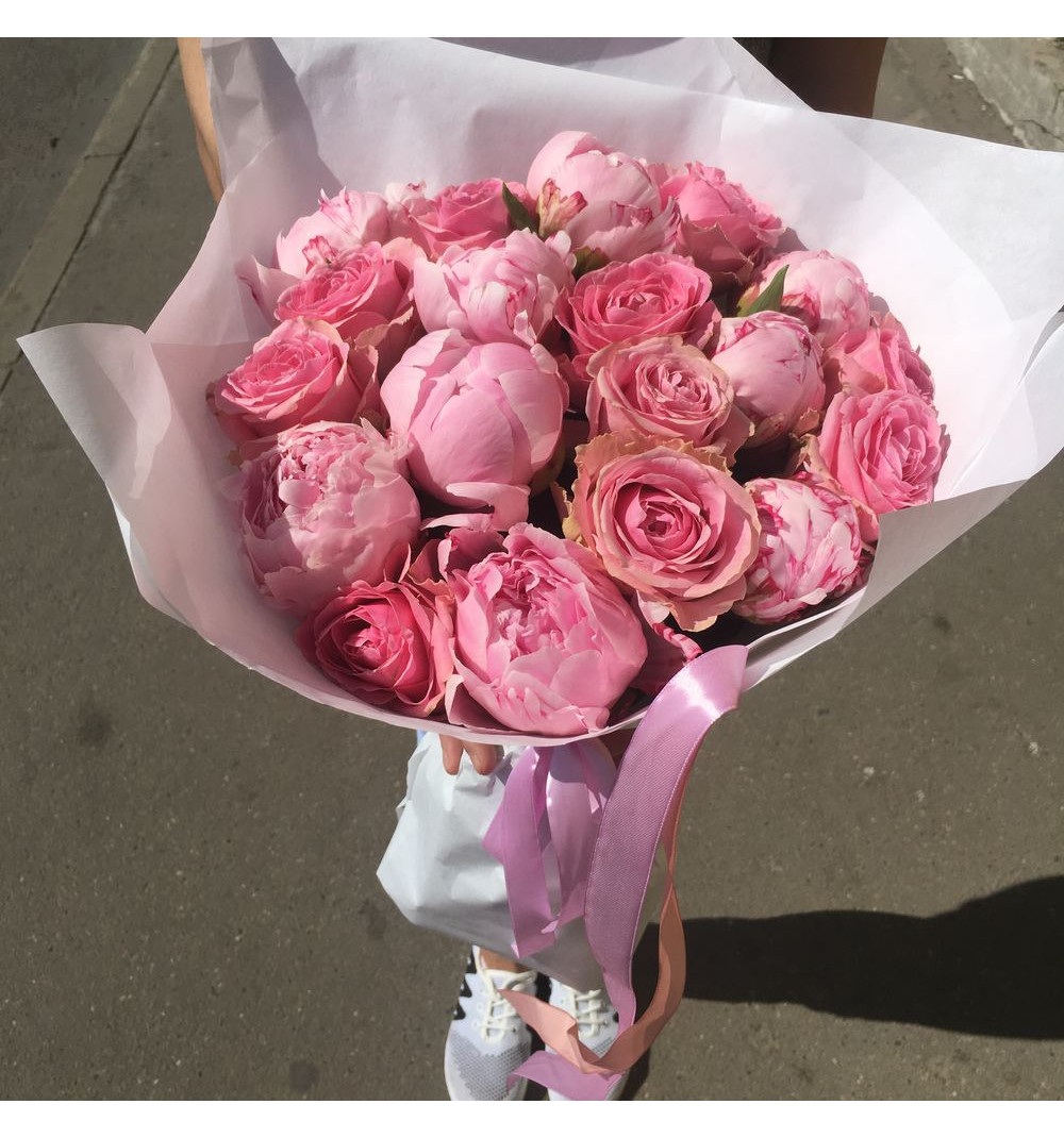 Авторлық гүл шоғы – махаббат пен шығармашылықпен жасалған ерекше өнер туындысы. Бұл букет нәзіктік пен талғампаздық әкелетін Сара Бернхардт сортының 9 қызғылт пионынан және букетке талғампаздық пен сәнділік беретін ұзындығы 50 см болатын кениялық сорттың 10 раушанынан тұрады. Үш атлас таспамен және екі стильді қаптамамен безендірілген бұл букет өмірдегі ерекше сәттер мен оқиғаларға тамаша сыйлық жасайды. Сезімдеріңізді білдіру және сүйіктіңіздің күнін одан да ерекше ету үшін осы бірегей дизайнер букетін беріңіз.