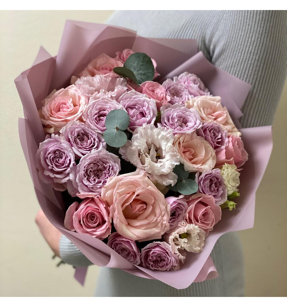 Этот букет — чудесное сочетание нежно-фиолетовых и розовых оттенков, создающее романтическую и нежную атмосферу. В состав входят прекрасные розы, которые приносят нотки красоты и элегантности, а также эвкалипт и эустома, добавляющие свежести и изысканности. Этот утонченный букет станет идеальным подарком для выражения своих чувств и создания волшебных моментов, оставляя яркие и незабываемые впечатления у получателя. Подарите этот нежно-фиолетово-розовый букет, чтобы придать особенность вашему поздравлению и подчеркнуть важность этого момента.