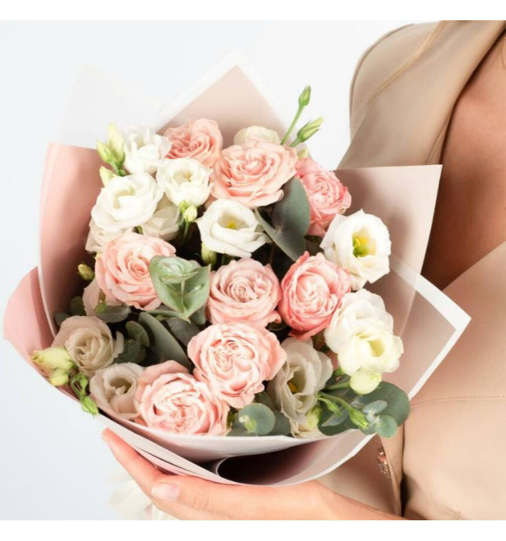 Букет с пионовидной розой и эустомой — это изысканное и стильное сочетание двух прекрасных цветов. Пионовидная роза приносит волшебство своими многослойными лепестками и нежным оттенком, а эустома добавляет ароматные ноты и свежесть. Этот уникальный букет создает атмосферу романтики и изящества. Он станет прекрасным подарком для особых моментов и событий, чтобы выразить свои чувства и создать незабываемые впечатления. Букет с пионовидной розой и эустомой — это элегантное и незабываемое сочетание красоты и страсти.