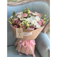 The designer bouquet with alstroemerias and chrysanthemums is a sophisticated and stylish floral work of art. This bouquet perfectly combines 5 delicate alstroemerias, which give it lightness and tenderness, and 5 graceful chrysanthemums, adding bright colors and sophistication. The designer packaging, elegantly designing this bouquet, gives it a special charm and makes it an ideal gift for special moments and events in life. This bouquet will reflect your care and attention to your loved ones, giving joy and admiration to its recipient.